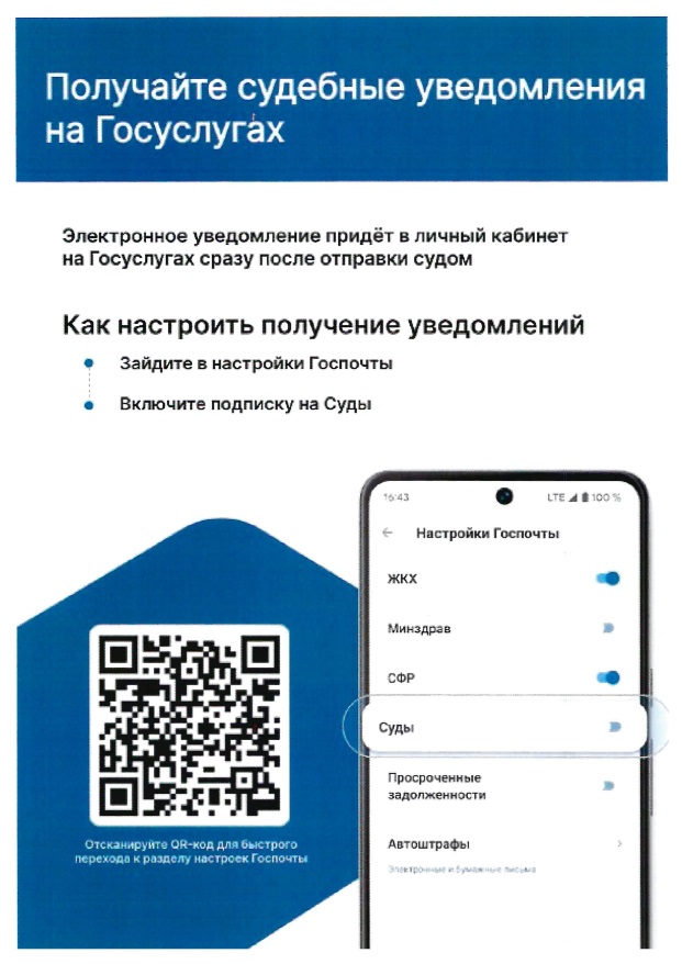 Управление Судебного департамента в Курганской области напоминает, что судебные уведомления можно получать на Госуслугах.