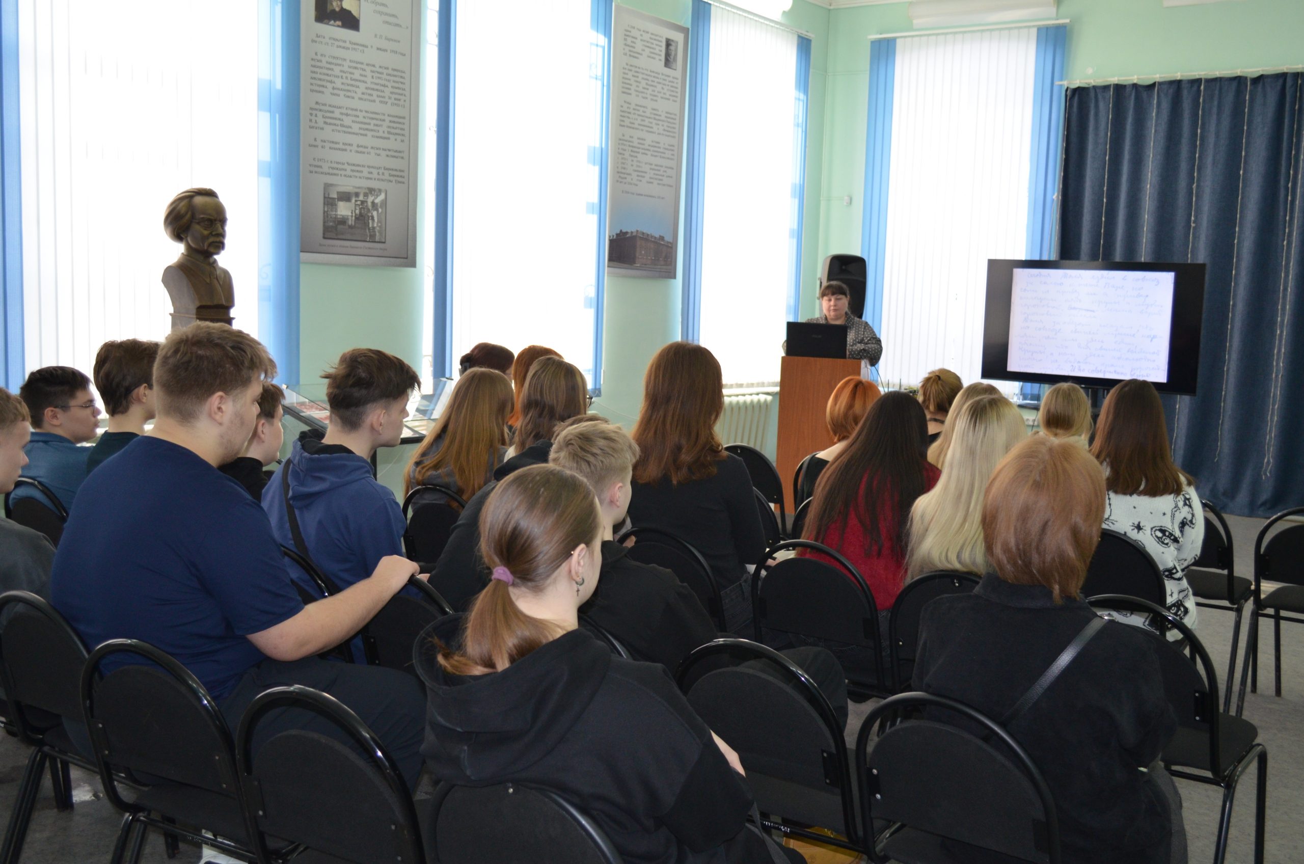 14 января в Шадринском краеведческом музее стартовал Месячник оборонно-массовой и спортивной работы. Лекции, посвящённые теме Великой Отечественной войны, посетили старшеклассники гимназии № 9, школы № 20 и студенты Зауральского колледжа физической культуры и здоровья.