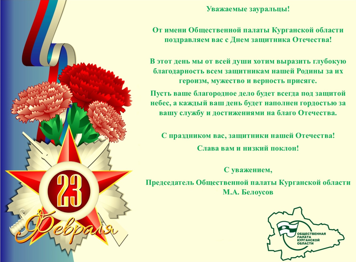 Общественная палата Курганской области поздравляет зауральцев с Днем Защитника Отечества!