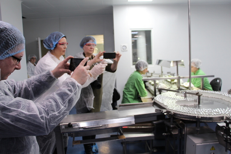 Два главных впечатления: на заводах далеко не в первый раз, но здесь обилие сложнейшей техники просто ошеломляет. Кругом хромированные агрегаты и механизмы. Многие видим из-за защитного стекла, поскольку они находятся в чистой зоне типа «А», где происходит упаковка стерильных препаратов. Везде электронные системы управления и манометры, поскольку в чистых помещениях обеспечивается избыточное давление. Перепад температур: где-то ощутимо жарко, где-то чувствуется специально созданная прохлада… Полное впечатление, что находишься или на борту космического корабля, или атомной подводной лодки.