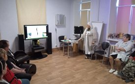 В конце мероприятия в молебной комнате стационара совершен акафист Божией Матери «Неупиваемая Чаша». Пациенты со свечами в руках молились об исцелении.